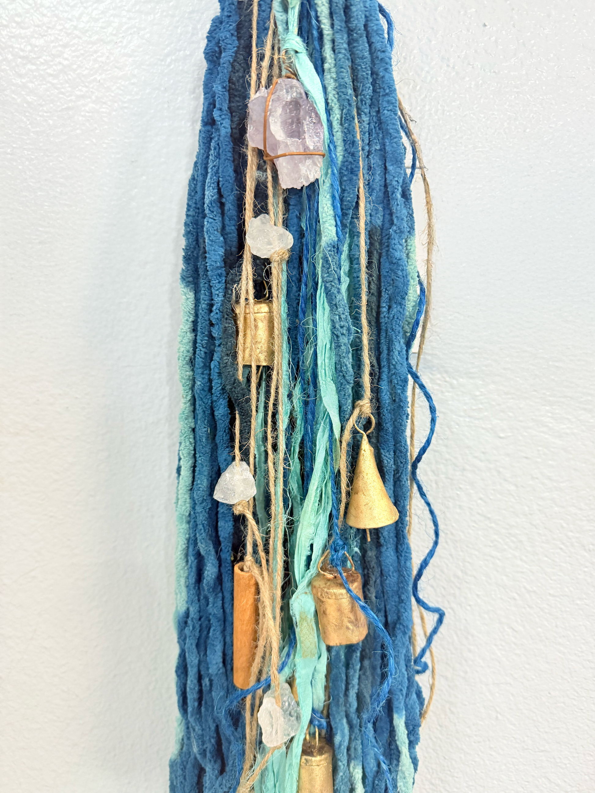 The bells are approximately 27” long and are intended to be hung near a doorway or altar to invite protection and positive intentions. Due to their handmade nature, each one is unique.